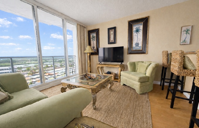 Ligger på Hyde Beach House Resort fullt møblert hjørne 2bed/2bath med både hav- og kanalutsikt. Minutter å gå til stranden. Feriestedet tilbyr en rekke fasiliteter som oppvarmede overdimensjonerte bassenger, tennisbaner, toppmoderne treningsstudio, klubbrom, takterrasse og fellesområde med sommerkjøkken og grill, forretningssenter, kino, festrom med mye mer. Ligger minutter unna stranden, restauranter, kjøpesenter og Gulf Stream Casino.