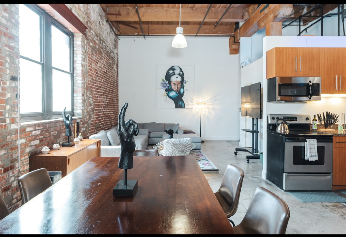 Vær oppmerksom på følgende detaljer om loftet vårt i det pulserende Arts District (1st St. og Vignes St). Du kan sjekke kryssende gater før du bestiller. - Praktisk plassert 30 minutter fra LAX - Bare 20 minutters kjøretur fra Hollywood. - Bare ti minutter unna Staples-senteret. Fordyp deg i en unik kunstopplevelse på loftet vårt, prydet med kuraterte gjenstander fra kjente kunstnere, inkludert graffiti og digital kunst.