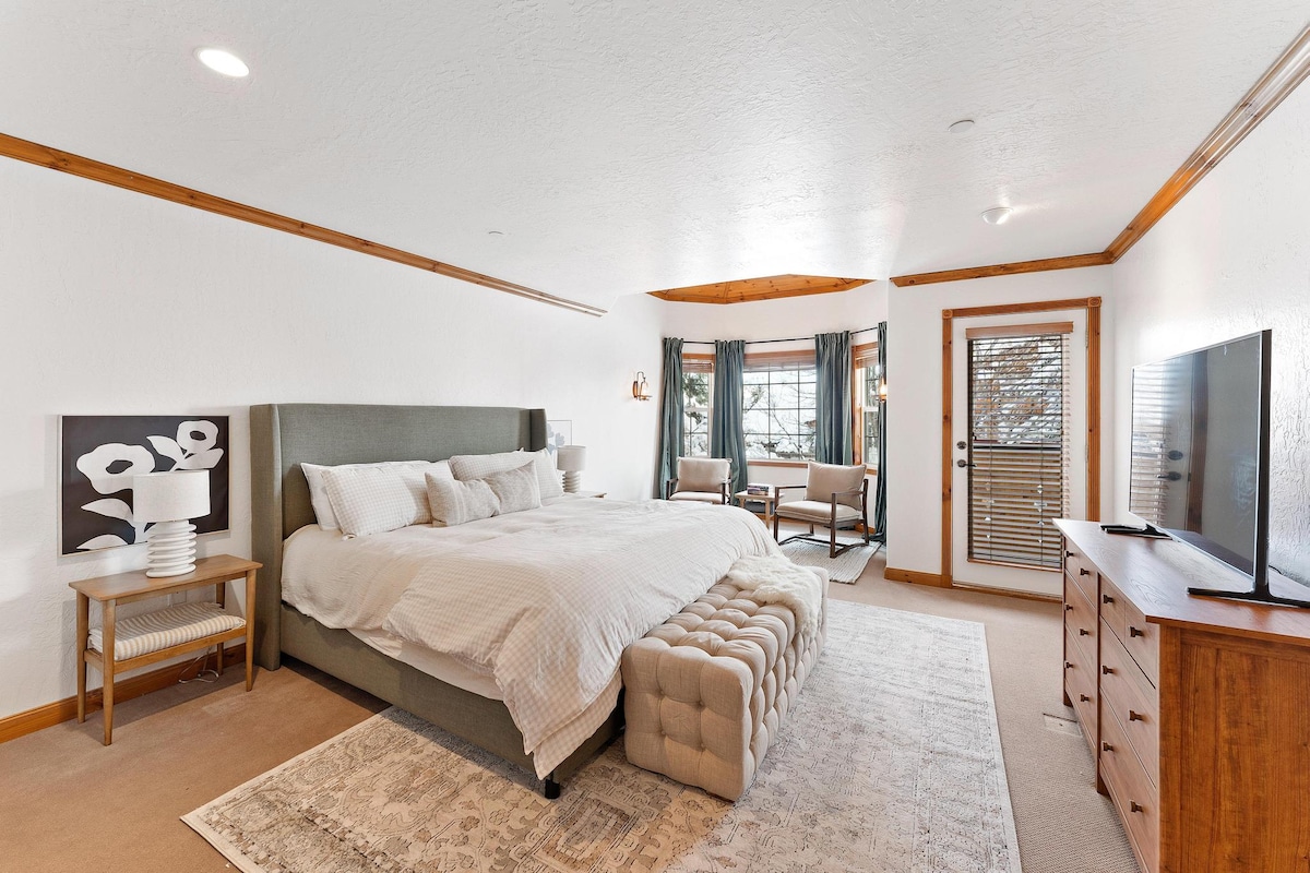 Denne stilige leiligheten har fantastisk utsikt over skianleggene Deer Valley og Park City, som ligger noen minutter unna, med utsikt over Jordanelle Reservoir og Upper Provo River, i et nytt luksushjem i et lokalsamfunn som heter Benloch Ranch. Sitt i det private boblebadet for syv personer eller den finske utendørsbadstuen, og nyt den praktfulle utsikten. Du kan til og med gjøre yoga ute på terrassen eller slappe av etter en dag med skigåing, fotturer, sykling, fluefiske, padlebrett på dammer i nabolaget eller i innsjøen i nærheten, eller andre aktiviteter i Park City-området.