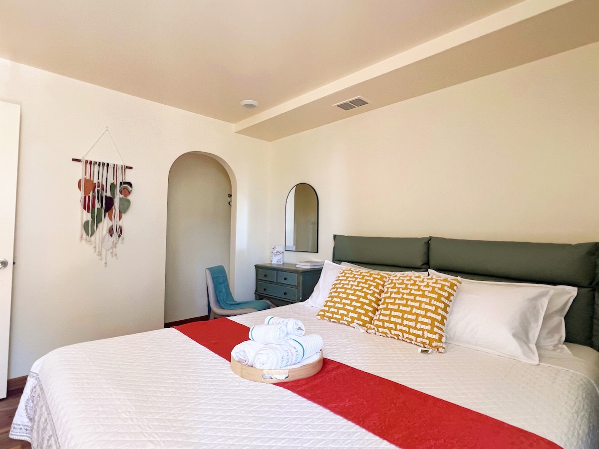Aloha og velkommen til Hale Kai! Denne smakfullt møblerte Waikiki-studioleiligheten ble nyrenovert i 2023 og har et fullt kjøkken med helt nye rustfrie apparater, bad med badekar, privat lanai (utendørs balkong) med sitteplasser, alt bak en sikker inngang som ligger praktisk til ved inngangen til Kalakaua Avenue i verdensberømte Waikiki Beach. Enheten har en queen size-seng og en sammenleggbar queen size-sovesofa for komfortabel søvn for opptil fire gjester.
