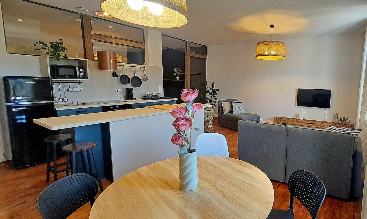 Velkommen til LA GALUPE! Kom og nyt et 70 m² stort sted i hjertet av Mont-de-Marsan med utsikt mot bredden av Midouze. Denne leiligheten er designet for å få deg til å føle deg som hjemme med sin romslige stue som blander sjarmen fra det gamle med komforten fra det moderne. Fordeler: et stort, fullt utstyrt kjøkken som gjør at du får lyst til å lage mat … restaurantterrassen rett under vil vekke smaksløkene dine.