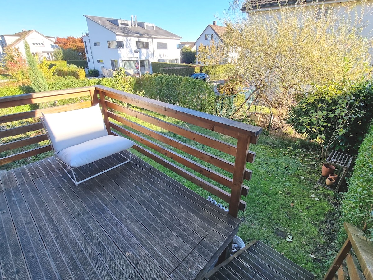 Slapp av med partneren eller familien din på dette fredlege stedet. Er et lite paradis i nærheten av kanten av skogen/bekken i det grønne, rolige nabolaget i enfamiliehus. Leiligheten med 2,5 rom ligger i en bungalow med 80-talls sjarm. Huset har innkjørsel og er derfor borte fra veien, som kun brukes av beboerne. Noen ganger kan rådyr, ekorn og andre ville dyr observeres om sommeren. Det er to sitteområder i hagen. Huset ligger bare 20 minutter fra Zürich by med bil.