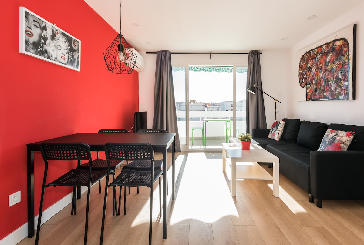Ideelt for et par dager i Madrid, for jobb eller turisme. Svært lys og koselig 80 meter stor leilighet, med et vakkert, svært moderne design. Den har tre soverom, en veldig komfortabel stue, et fullt utstyrt kjøkken og en terrasse for å sitte ute. Stedet har mange vinduer og mye lys, varmt om vinteren og veldig kjølig om sommeren med aircondition. Ved siden av et kjøpesenter med butikker og kafeer, er nabolaget veldig rolig med et veldig fint nabolag og mange parker og grønne områder.