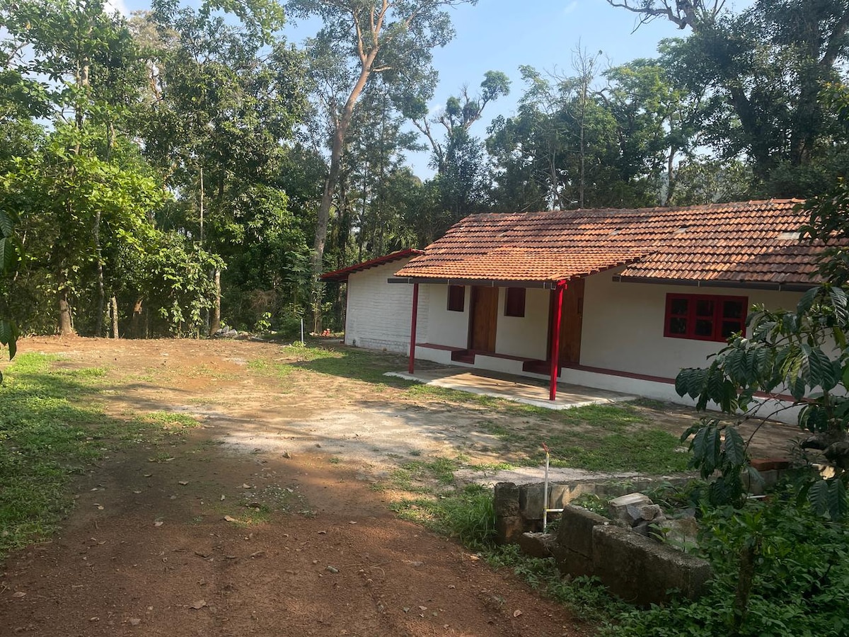 Finn roen igjen på eiendommen vår i nærheten av Dubare Elephant Camp. Omgitt av frodige kaffeplantasjer og grøntområder, tilbyr vi gratis trådløst nettverk med høy hastighet, koselige rom, parkeringsplass og et rolig sted som er ideelt for arbeid eller avslapning. Nyt nybrygget kaffe med fersk kumelk fra gården. Utforsk Coorgs naturskjønne stier og elver, eller jobb fra naturen. Autentisk hjemmelaget mat, privat uavhengig sted og varmen ved å bo med familien vår. Opplev Coorg som en lokal innbygger.