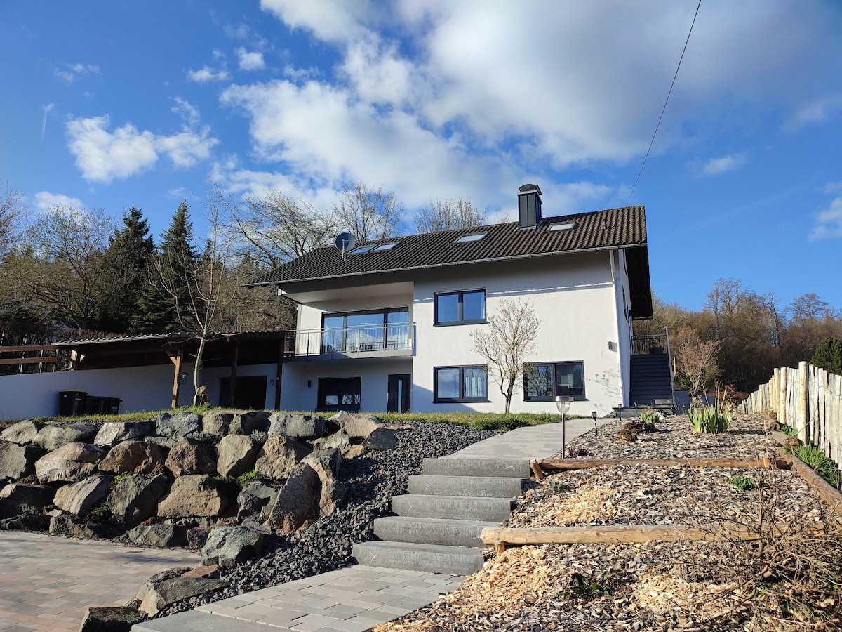Velkommen til den vakre leiligheten vår, den ligger i en rolig beliggenhet, i en bydel sørvest for Fulda. Fuldas sentrum og motorveiavkjørselen Fulda Süd (A7 og A66) ligger bare noen få minutter unna med bil. Med balkong og en vakker utsikt. Med 120 m² tilbyr den tilstrekkelig plass for komfort og funksjonalitet. Parker bilen din gratis og enkelt foran huset. Vi gleder oss til å ønske deg velkommen som vår gjest