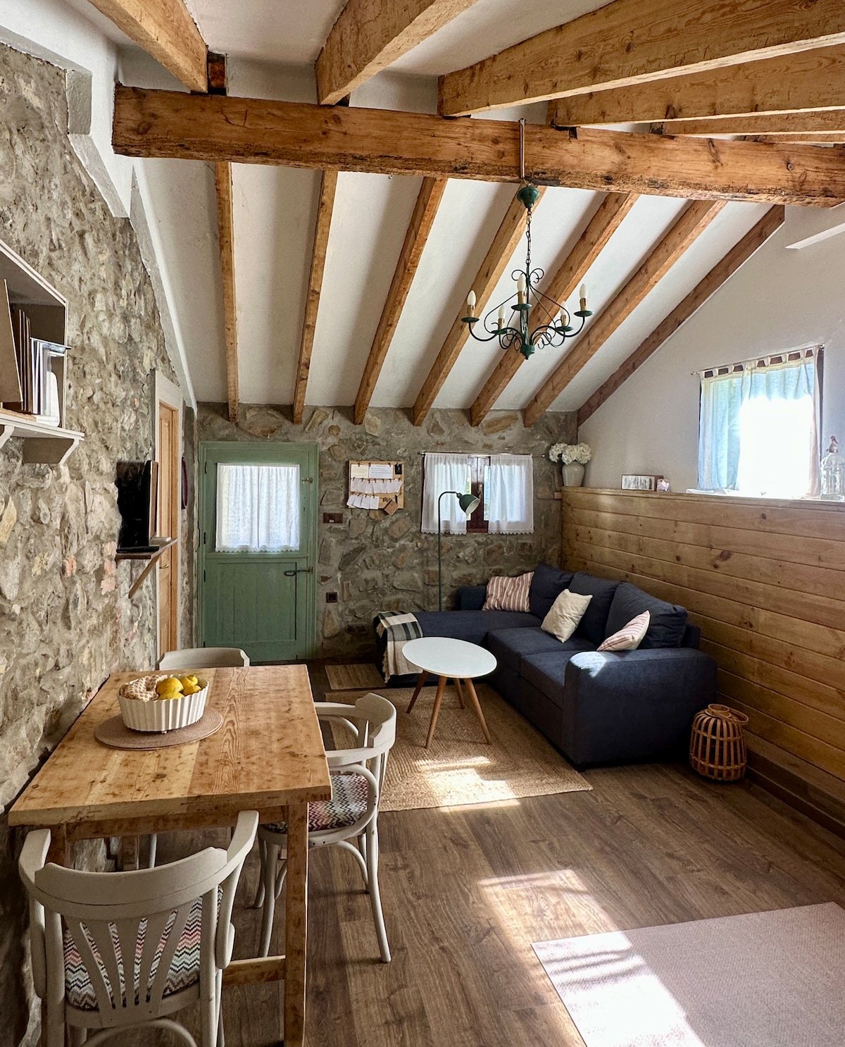 Huset vårt er en pasiega-hytte som vi har laget eksklusivt for oss selv. Vi har hatt glede av det i åtte år, og nå ønsker vi å dele dette spesielle huset med dere alle. Hytta har en stue med dobbel høyde på 50 m2 som er forbundet med et stort kjøkken, slik at du kan nyte et samlet areal på 100 m2. Den har også fire soverom med eget bad og bibliotek. Hele strukturen er laget av stein og tre, og ligger i et eksepsjonelt landskap med unik utsikt.