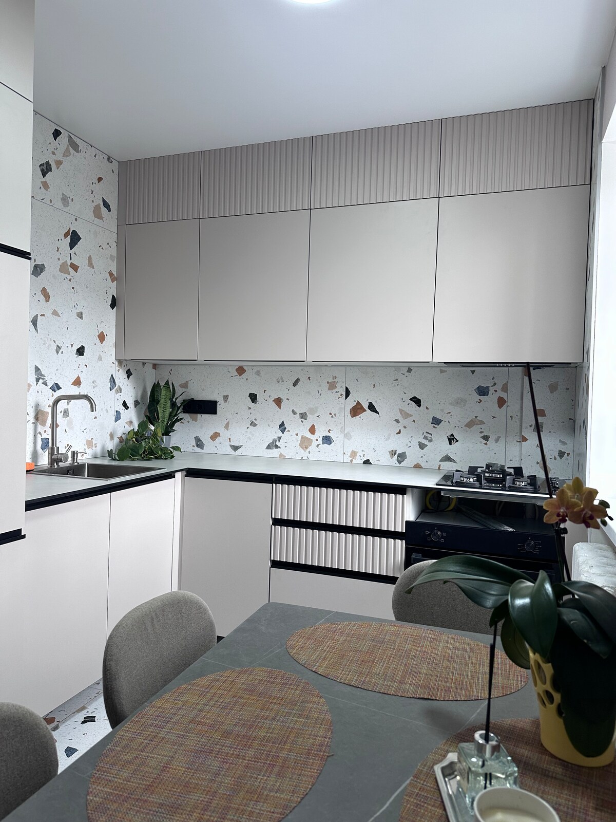 Остановитесь в стильном жилье недалеко от самых интересных достпримечетельностей. Апартаменти з терасою і власним подвір ям. Просторий тримісний номер з дуже великим двоспальним ліжком, кутовим двоспальним диваном, обідньою зоною, з повністю укомплектованою кухнею та окремою ванною кімнатою, оснащеною необхідною міні-парфумерією, рушниками та феном. У номері є кондиціонер, ТВ, WI-FI. Площа номера 29 кв.м.