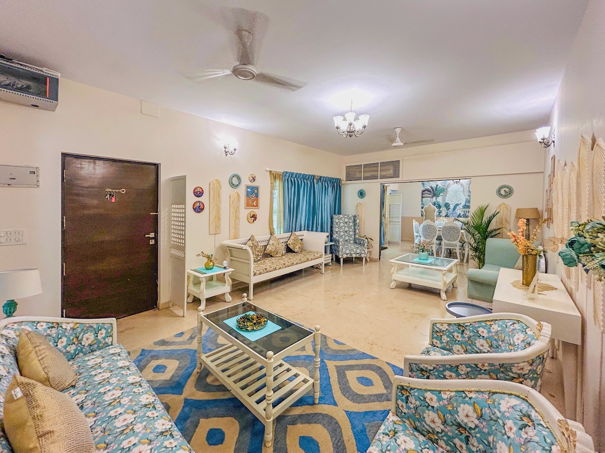 Opplev roen i denne romslige 3BHK-villaen på Shubh Enclave, designet for familier, grunnleggere og kreative. Plassert ved siden av frodige grøntområder og en fredelig innsjø, skaper rikelig med sollys og frisk luft et fristed for romslighet, stillhet og stillhet ✔ Tre soverom med king-size-seng og private tilknyttede toaletter. ✔ Romslig stue med 55"smart-TV ✔ To luftige balkonger ✔ Fullt utstyrt kjøkken: mikrobølgeovn, komfyr, kjøleskap, mikseredskaper, vaskemaskin. ✔ Daglig rengjøring er tilgjengelig, lag mat på forespørsel