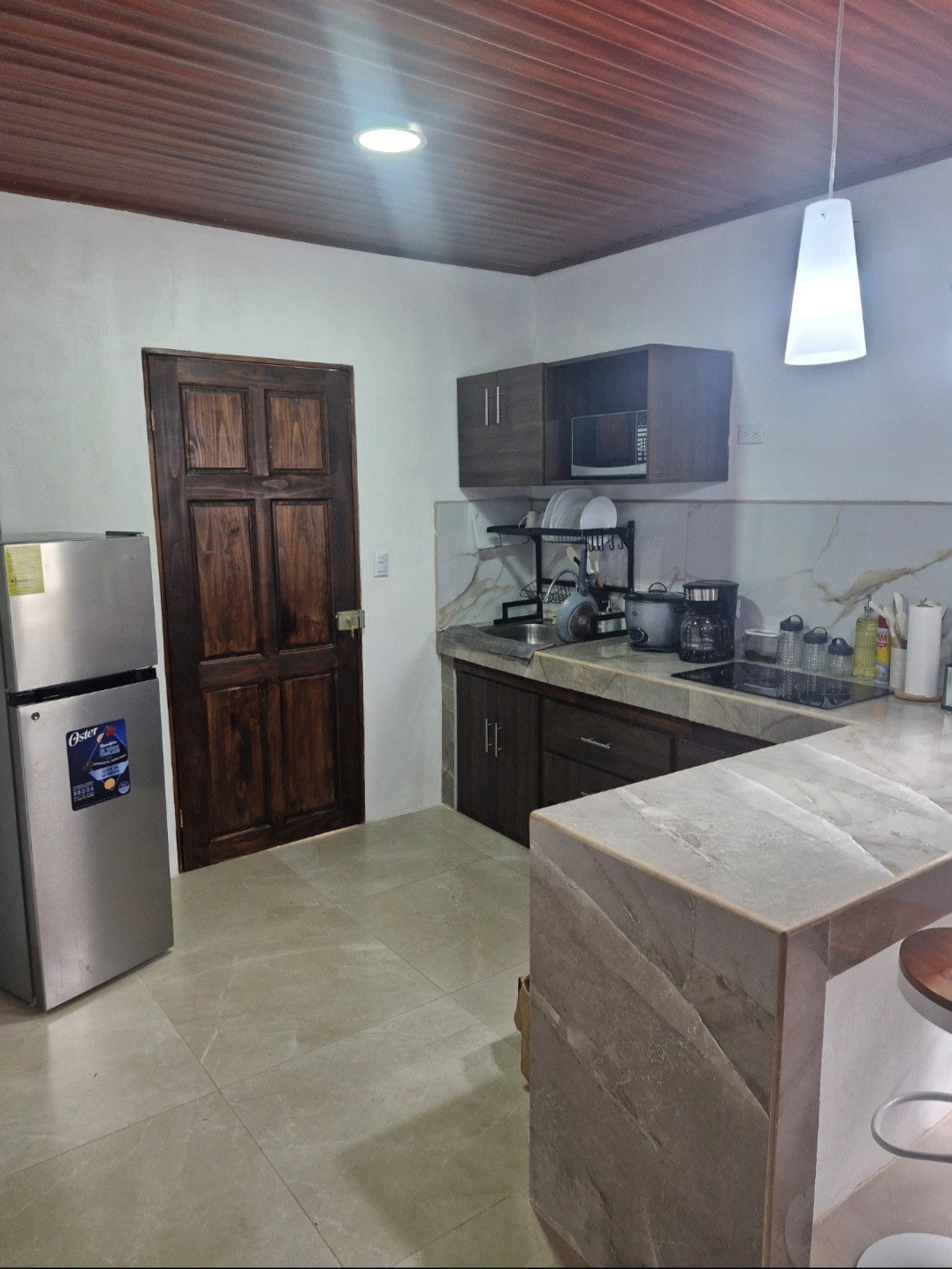 Bienvenido! Velkommen til Casa Aire Complex. Casa Aire Complex er et miljøvennlig bygg med fem unike hjem. Leiligheten har ett soverom, ett bad og en sovesofa i stuen. Det er komfortabelt plass til tre personer. Alle hjemmestiler er isolert for energieffektivitet og fullt møblert. Guanacaste og andre lokale tresorter brukes i interiøret. Eiendommen har parkeringsplass og sikkerhetspersonell på stedet. Generelt fellesareal deles for parkering blant de andre enhetene.