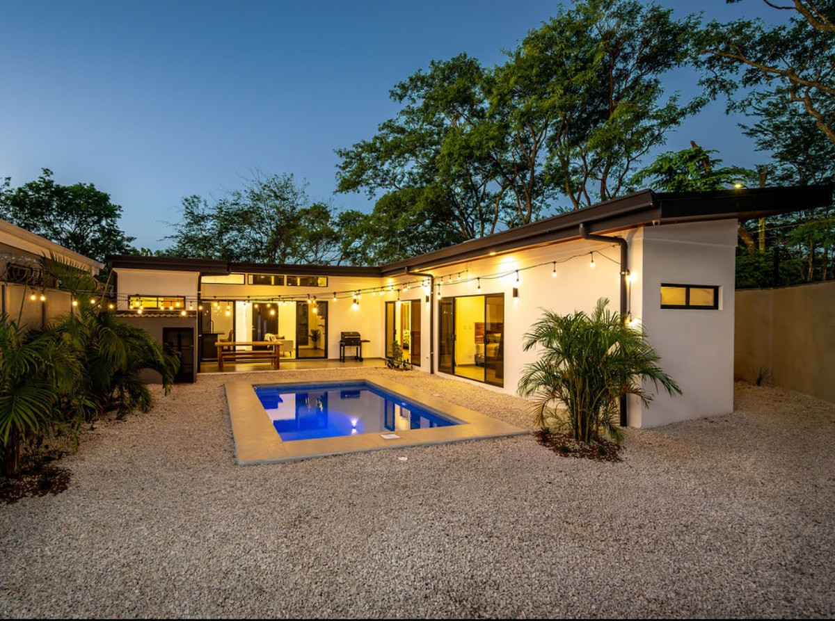 Velkommen til Maitri, din koselige ferie! Denne villaen med to soverom og tre bad er laget for komfort og avslapning. Den ligger bare en åtte minutters spasertur fra stranden, så du får den perfekte blandingen av fred og eventyr. Hold kontakten med 2 x 200 mbit høyhastighets internett. Nyt eksklusiv concierge og tilgang til Langosta Beach Club inkludert i oppholdet! Vi befinner oss i sentrum av Tamarindo, ved siden av Tamarindo nattmarked. Én time fra LIR (Liberia flyplass) og fire timer fra SJO (San Jose flyplass) med bil.
