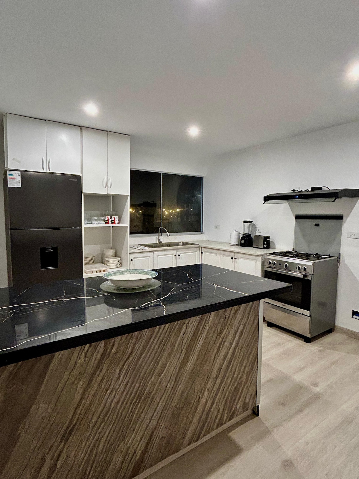 Kom deg vekk fra byen og slapp av med familien på dette rolige stedet 250 meter fra Caballeros-stranden. Leilighet på 152 m2 i første etasje, 4 soverom, 3 komplette bad, rommer komfortabelt 7 personer. Stue og spisestue integrert med kjøkkenet i samme miljøring, avgrenset av en bar i to nivåer, med høye benker og elektriske uttak, ideelt for hjemmekontor. 65" smart-TV og lydbar i stuen. Kabel-TV på alle tre smart-TV-ene. Wi-Fi i hele eiendommen. Gassgrill på terrassen