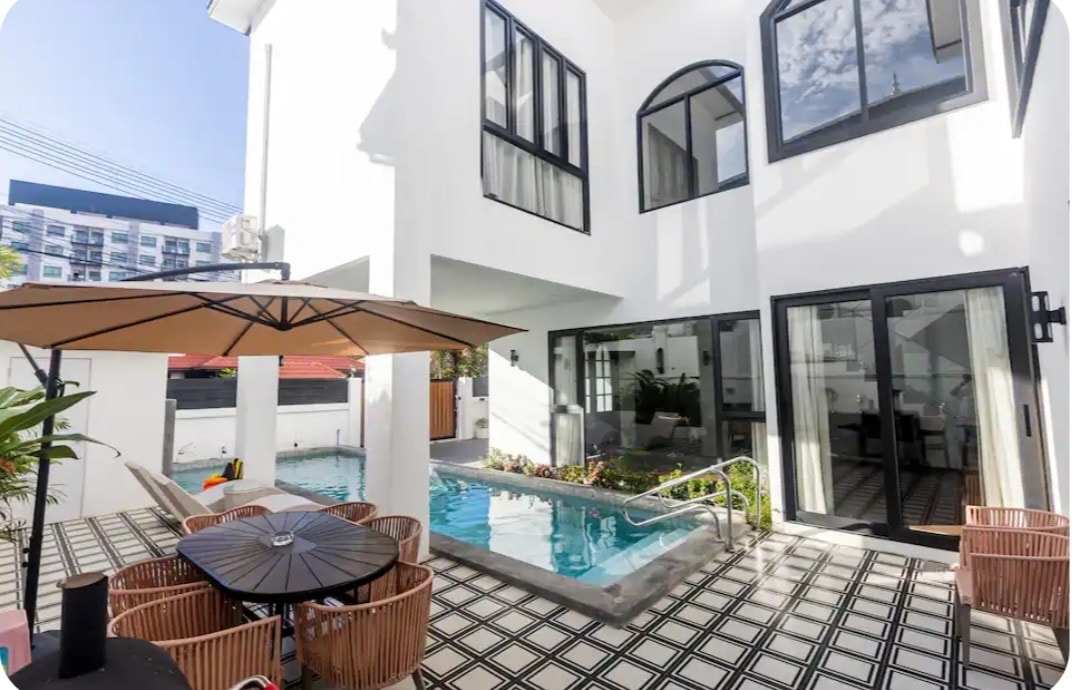 Velkommen til vår stilige villa med fire sengerom, fire bad og privat basseng, bare ti minutter fra stranden! Perfekt for familier eller grupper 🧽 Gratis rengjøring og bytte av sengetøy i løpet av oppholdet ✨ Gratis vann, brus, kaffe, te. 🍴 Fullt utstyrt kjøkken og grill. 🛒 En matbutikk foran villaens inngang. 🥬 Et lokalt marked med ferske råvarer ligger noen få minutter unna. Hentetjeneste på🚖 flyplassen 🏡 Gjestens merknader 🔑 Innsjekking uten vert 🔌 Strømforbruk belastes med 8 THB/enhet. (de første 30 enhetene er gratis) 💰 Refunderbart depositum: 5000 THB