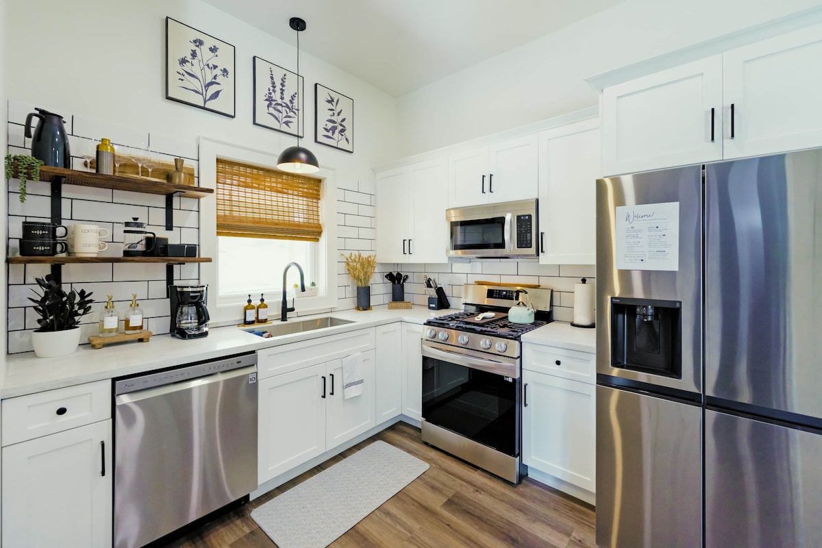 Kos deg med INKLUDERT kaffe + frokost fra R44 Coffee Shop hver dag av oppholdet ditt! Gå inn i komforten i denne nylig renoverte 2BR (*valgfritt 3. BR i stuen med vår elegante Murphy-seng!) 1,5 bad i den sjarmerende byen Mantua, OH. ✔ To komfortable soverom (*valgfritt tredje soverom i stuen med Murphy-sengen vår!) ✔ Åpen designstue. ✔ Fullt utstyrt kjøkken ✔ Frokost og kaffe inkludert. ✔ Liten veranda. ✔ Trådløst nettverk med høy hastighet. ✔ Smart-TV ✔ Vaskemaskin/tørketrommel ✔ Gratis parkering + elbillading (220 stikkontakt).