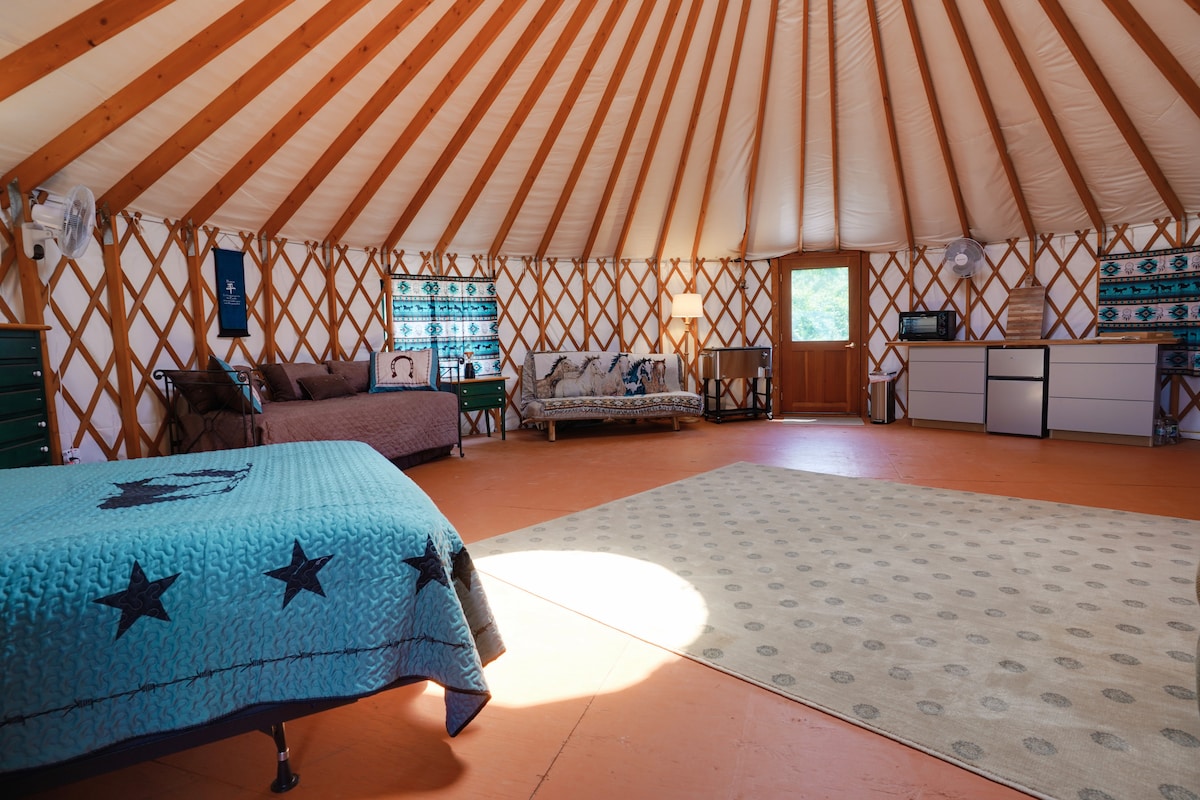 Glamping på Peaceful Acres 30' Yurt