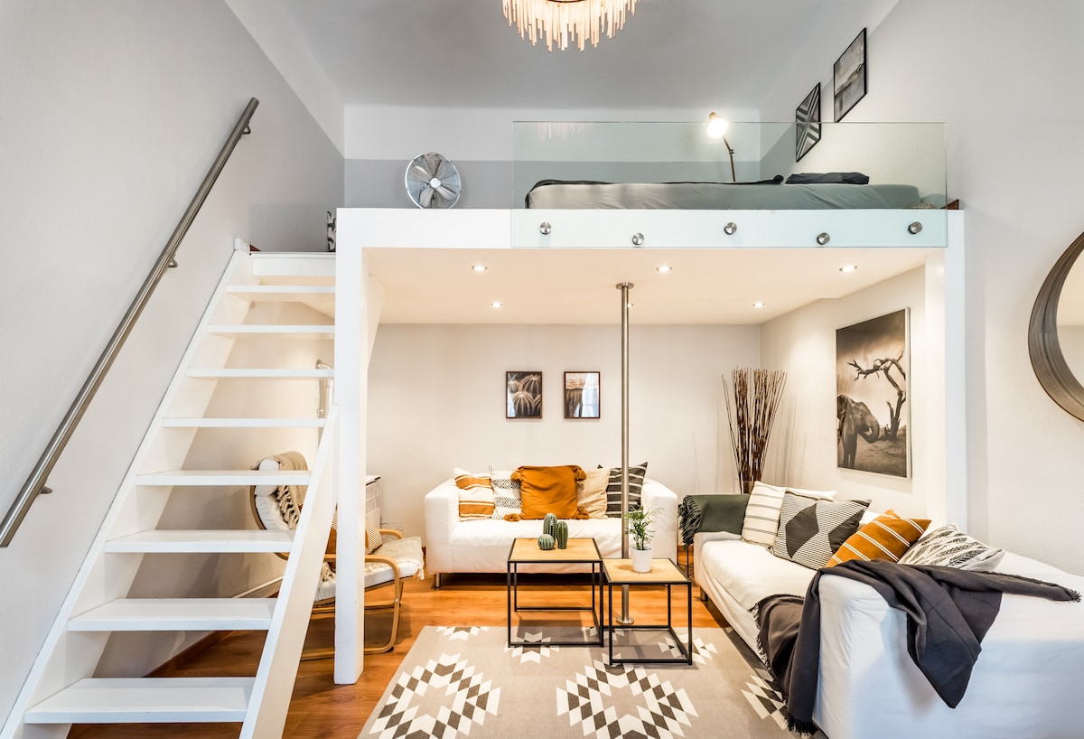 Et moderne loft på to nivåer med en dobbel dusj, bare tre minutters gange fra Nyugati, er tilgjengelig for leie etter en stor oppussing. Enten du elsker bylivet, men setter pris på et koselig hjemmemiljø, eller du er en forretningsmann på jakt etter stilig og rolig overnatting for å holde nettmøter, eller du er et par på en romantisk tur, er leiligheten vår et godt valg for deg. For de som planlegger å besøke byen med slektninger eller familievenner, har vi et loft ved siden av for opptil fire gjester.
