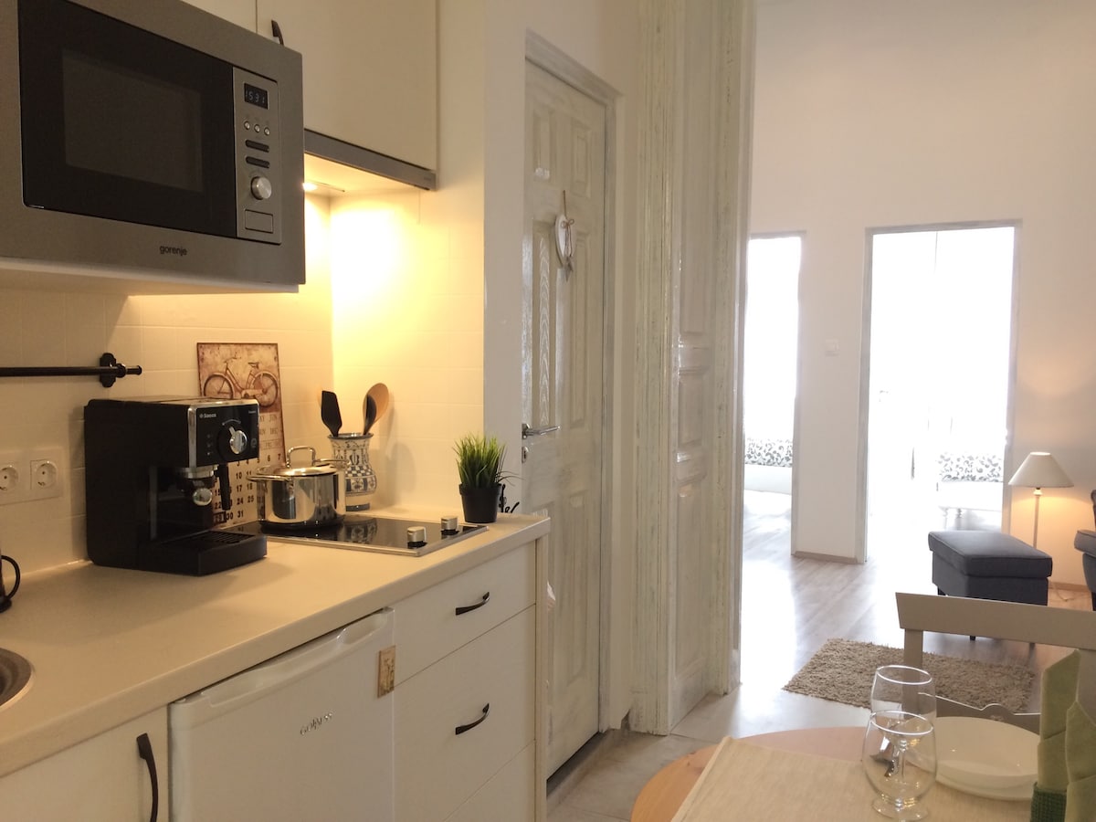 Den nye leiligheten passer perfekt for par eller gjester som reiser alene. Vil du nyte en travel gate med mange restauranter, butikker og et kjøpesenter? Eller ønsker du å nyte fuglesang om morgenen og en rolig kveld i Budapest, mens du sitter på balkongen? Hos oss oppfyller du alle ønskene dine. Vi setter pris på komfort av høy kvalitet. Kjøkkenet er fullt utstyrt for enhver forespørsel. Vaskemaskin med tørketrommel, slik at du kan vaske tingene dine når som helst. Madrass og sengetøy av høy kvalitet for å våkne opp i godt humør.