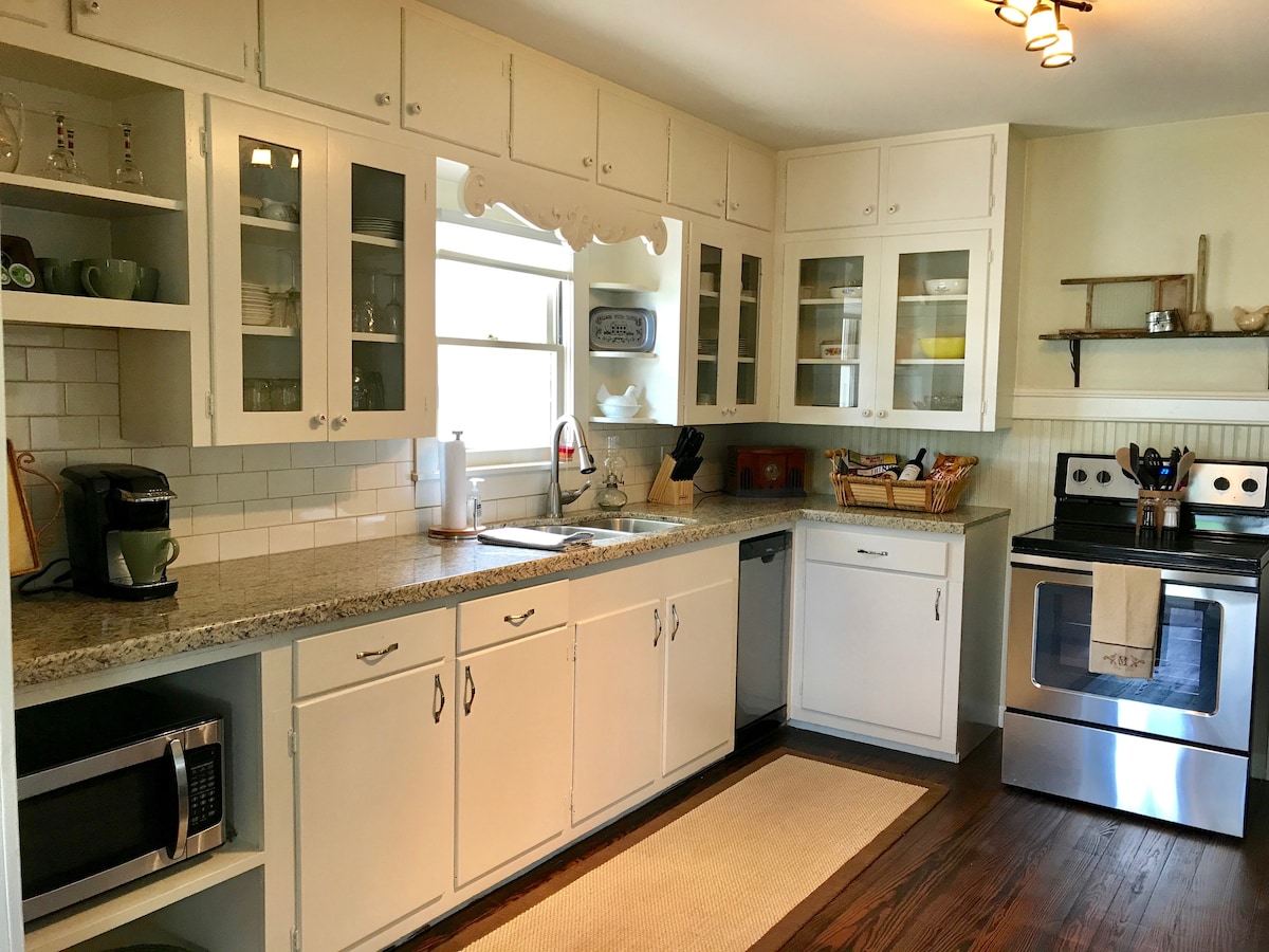 Vårt koselige hus ligger i en rolig gate omgitt av store levende eiker, noen minutter unna en kaffebar, Walmart og mange andre restauranter og bedrifter. La oss få det til å føles som hjemme! Vi tilbyr fersk stekt kaffe og et kjøkken fylt med redskaper, samt en vaskemaskin og tørketrommel. Slapp av i en gyngestol på verandaen når du ankommer og slapp av! Det er ingen utsjekkskrav, så du kan fokusere på dagen din når du er klar til å dra. Send oss en melding om rabatter på lengre opphold
