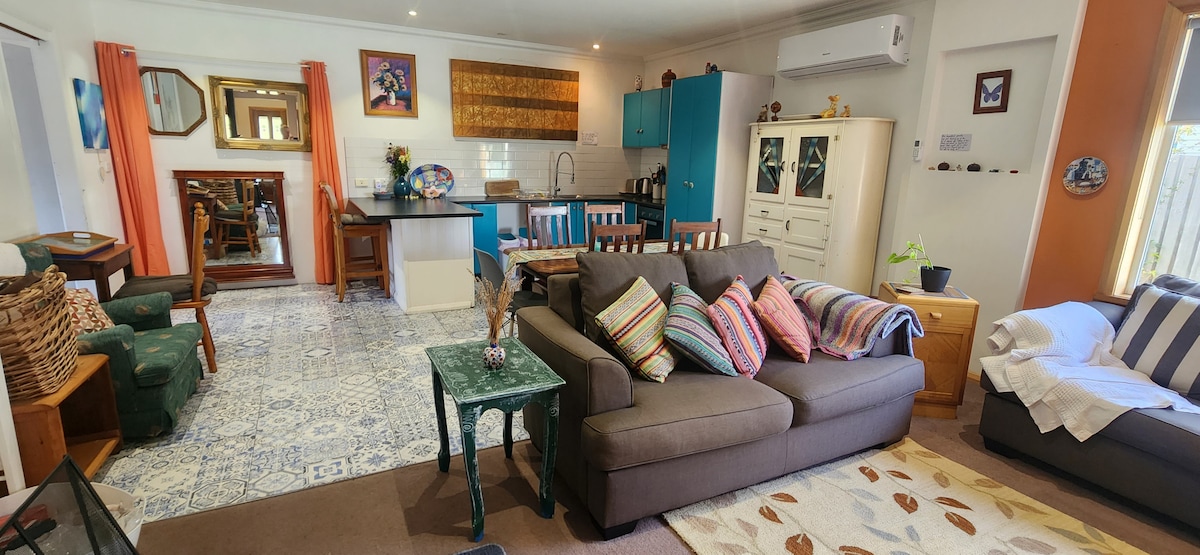 Med europeisk landlig stil og komfort, en komfortabel kingsize-seng og et dypt badekar laget for avslapning, er Green Gables B&B din base for å utforske Tasmanias Huon Valley og Bruny Island. Enten det er stjernekikking fra vinduet med utsikt over bukten eller planlegging av dagen med lokale tips, tilbyr vi en varm, personlig velkomst i hvert opphold. Nyt en hjemmelaget godbit ved ankomst. Bare tre minutter til Cygnet's kafeer, gallerier og markeder – 45 minutter fra Hobart. For par eller sologjester som ønsker plass, varm gjestfrihet og privatliv.