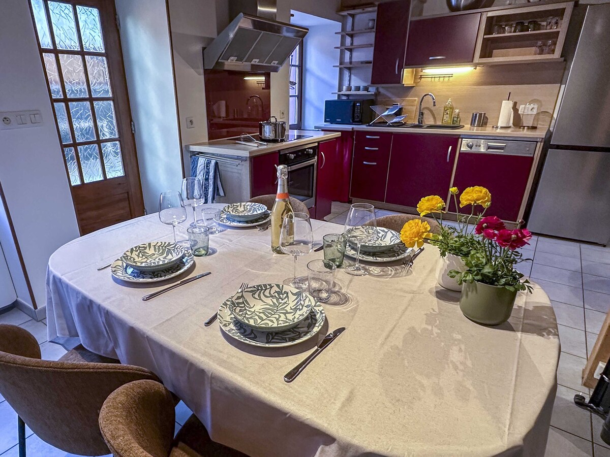 Privat overnatting i andre etasje i et hus i Alsace i det historiske hjertet av en av franskmennenes favorittlandsbyer. Sjarmerende leilighet, totalrenovert, som består av et soverom med dobbeltseng, et bad med dusj og toalett, en lys stue med utstyrt kjøkken og en sovesofa som fungerer som en tredje seng. På en balkong med utsikt over landsbyen og festningsvollene. Leiligheten er ikke tilgjengelig for personer med funksjonshemninger