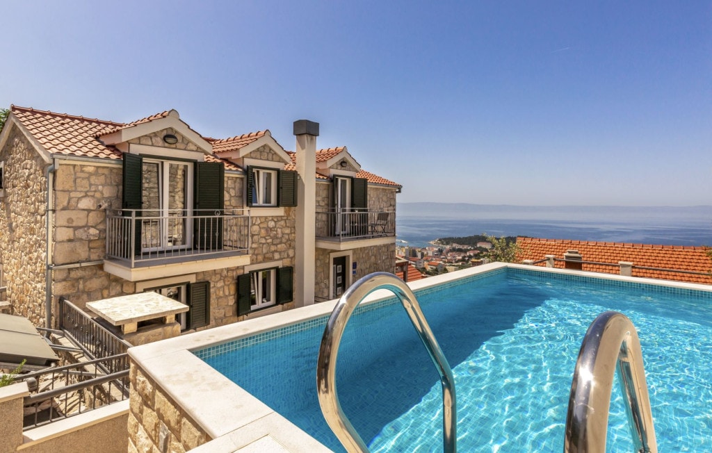 Et fullt utstyrt kjøkken og spisestue for opptil ti personer, innbydende, og det er en grillenhet utenfor villaen som er klar for noen gode biff. Et privat basseng er et perfekt sted for en morgenforfriskning før du drar ut for å utforske Makarska og også for kveldsavslapning etter en lang dag med å ha det gøy eller trene i et privat treningsstudio og badstue. Denne fleretasjes villaen har fem soverom med klimaanlegg og seks bad. Hver balkong har panoramautsikt over havet.