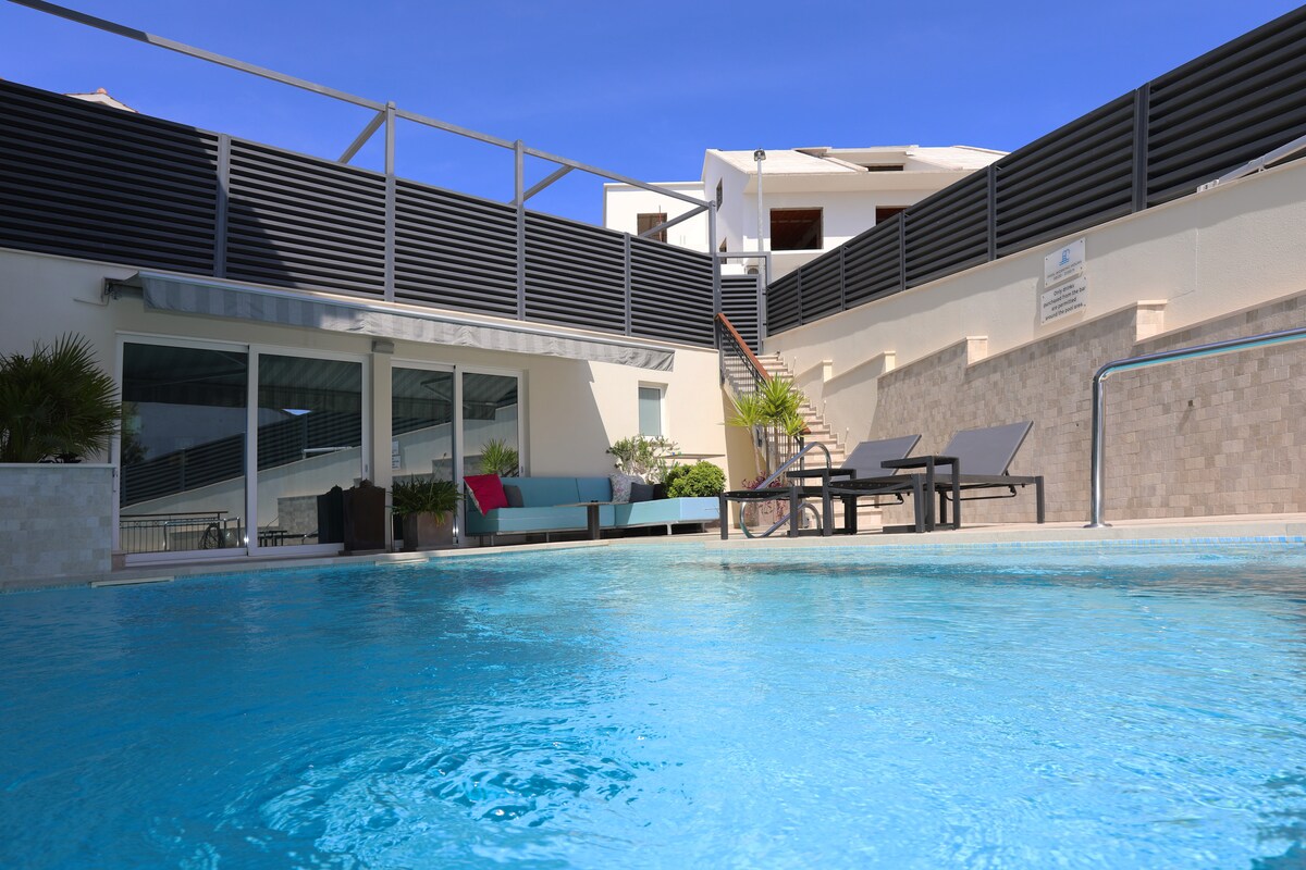 Velkommen til feriehuset ved sjøen! Fordyp deg i luksus på vårt rolige feriested med fantastisk havutsikt og et oppvarmet basseng. Med to soverom, to bad og gratis parkering kan du nyte komfort og bekvemmelighet. Slapp av på balkongen, sol deg ved bassenget eller spasér til nærliggende attraksjoner. Drømmeferien din i Bol starter her!