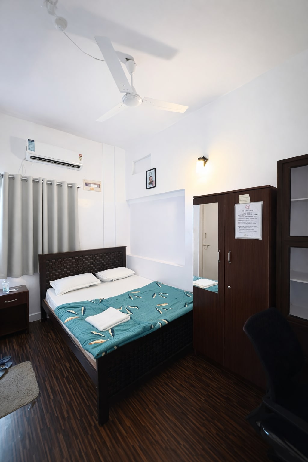 Opplev luksus og komfort i Executive-suiten vår i Hyderabad, perfekt for forretningsreisende eller par som ønsker et førsteklasses opphold. Denne elegant innredede suiten har et romslig soverom, moderne eget bad, raskt trådløst nettverk, klimaanlegg og et eget skrivebord. Den ligger i et førsteklasses område med enkel tilgang til IT-huber, kjøpesentre og restauranter, og tilbyr både bekvemmelighet og klasse.