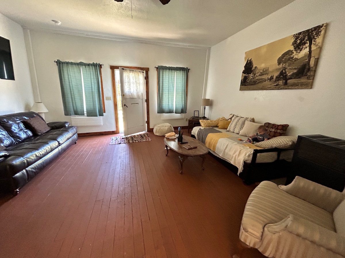 Relax with the whole family at this peaceful place to stay. Fully equipped and remodeled with laundry room, dishwasher, ice maker, BBQ all behind security gates. One bedroom has queen bed, second bunk beds that are both full sized. Also has a queen air mattress if you need extra sleeping area. Back yard has picnic table, BBQ and lawn chairs. Fully rocked for low maintenance.