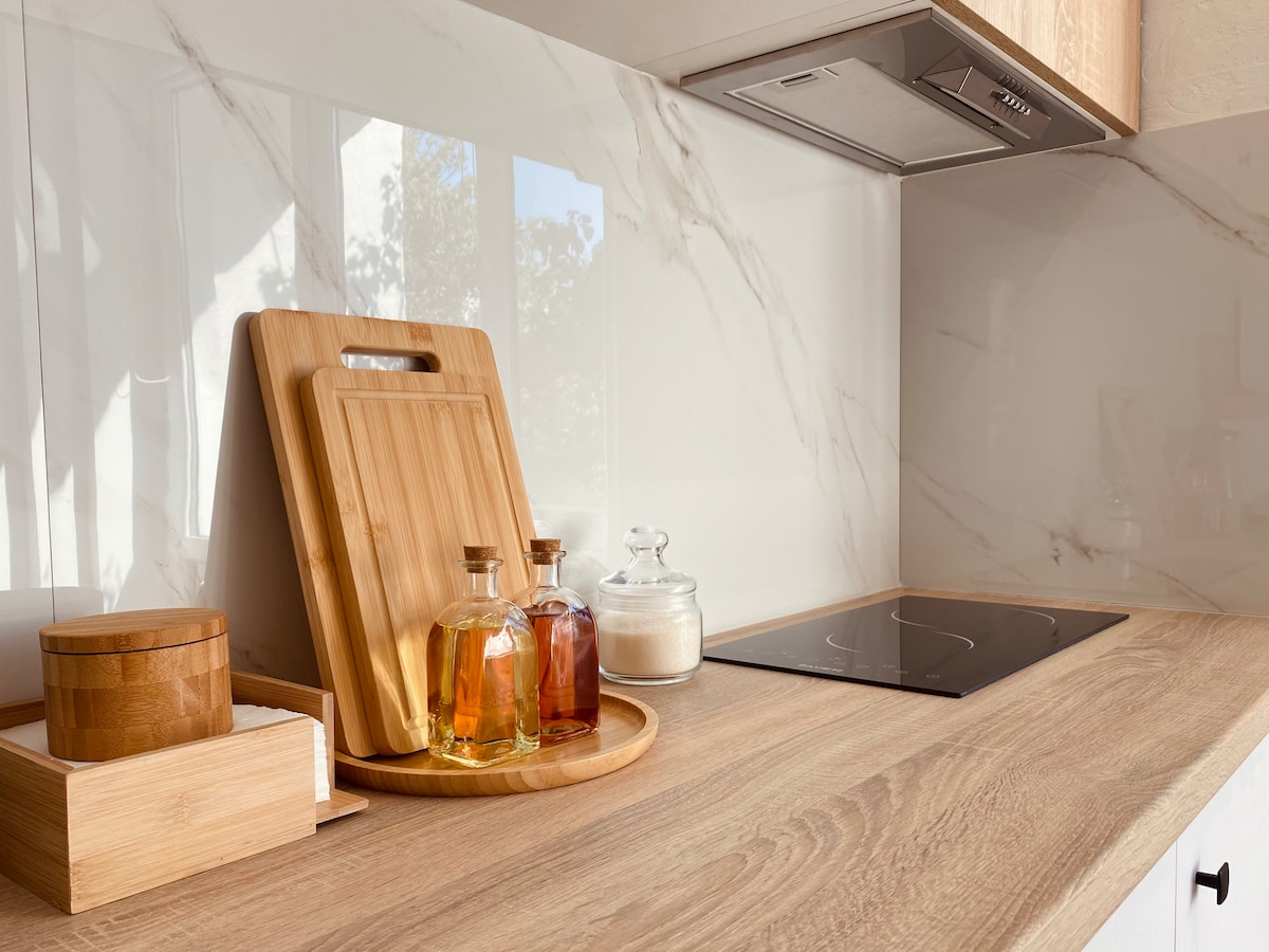 Bright 1BR GrandStay apartment on the 8th floor with elevator access. Open-plan living, kitchen & dining with sofa-bed for extra guests. Stunning balcony view overlooking Botanica sector and Rouse Valley Park. Fully equipped: two Smart TVs (bedroom+kitchen), 1000Mb/s Wi-Fi, coffee&tea station with candy/milk/sugar, washer&dryer, dishwasher tablets, and all essentials. Heating & AC via thermostat. Perfect for couples or families.