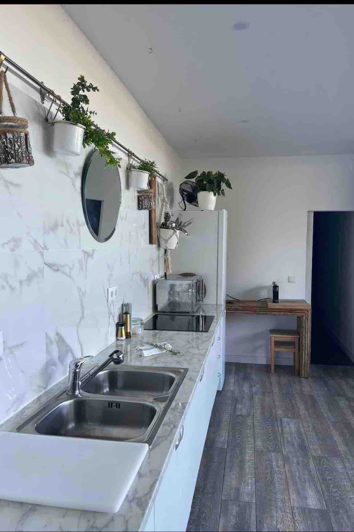 "Vi tilbyr en sjarmerende, atypisk og fullt utstyrt studioleilighet, like utenfor Toulouse. Denne boligen har et bad, et velutstyrt kjøkken og en koselig krok med en Queen Size-seng. Den ligger i rolige omgivelser, og har privat og sikret parkering. Bare 20 minutter med bil eller buss (linje 58) fra Toulouse, er dette det ideelle stedet for profesjonelle på reise, familiebesøk eller en romantisk helg.