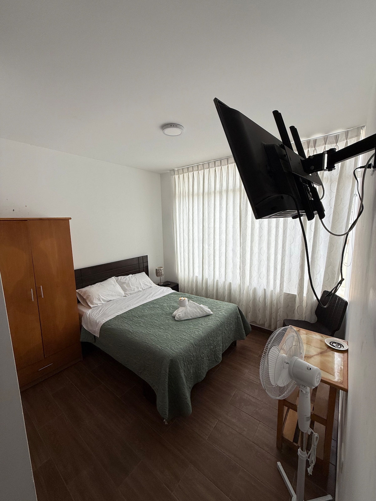 Som soloreisende vet jeg at det er vanskelig å bestille steder på budsjett, for de fleste stedene er basert på en pris på>én person. Dette er et rom alene med eget bad inne i en delt leilighet som vanligvis er tom. Fullt utstyrt kjøkken, stue, direkte TV og bord på en terrasse. Stort basseng i fellesområdet. Ligger i et rolig område, åtte minutters gange til byen eller den lokale stranden og to minutters kjøring til inngangen til Paracas National Reserva. Vi kan hjelpe deg med å bestille båtbilletten din på Ballestas Island eller gi deg anbefalinger.