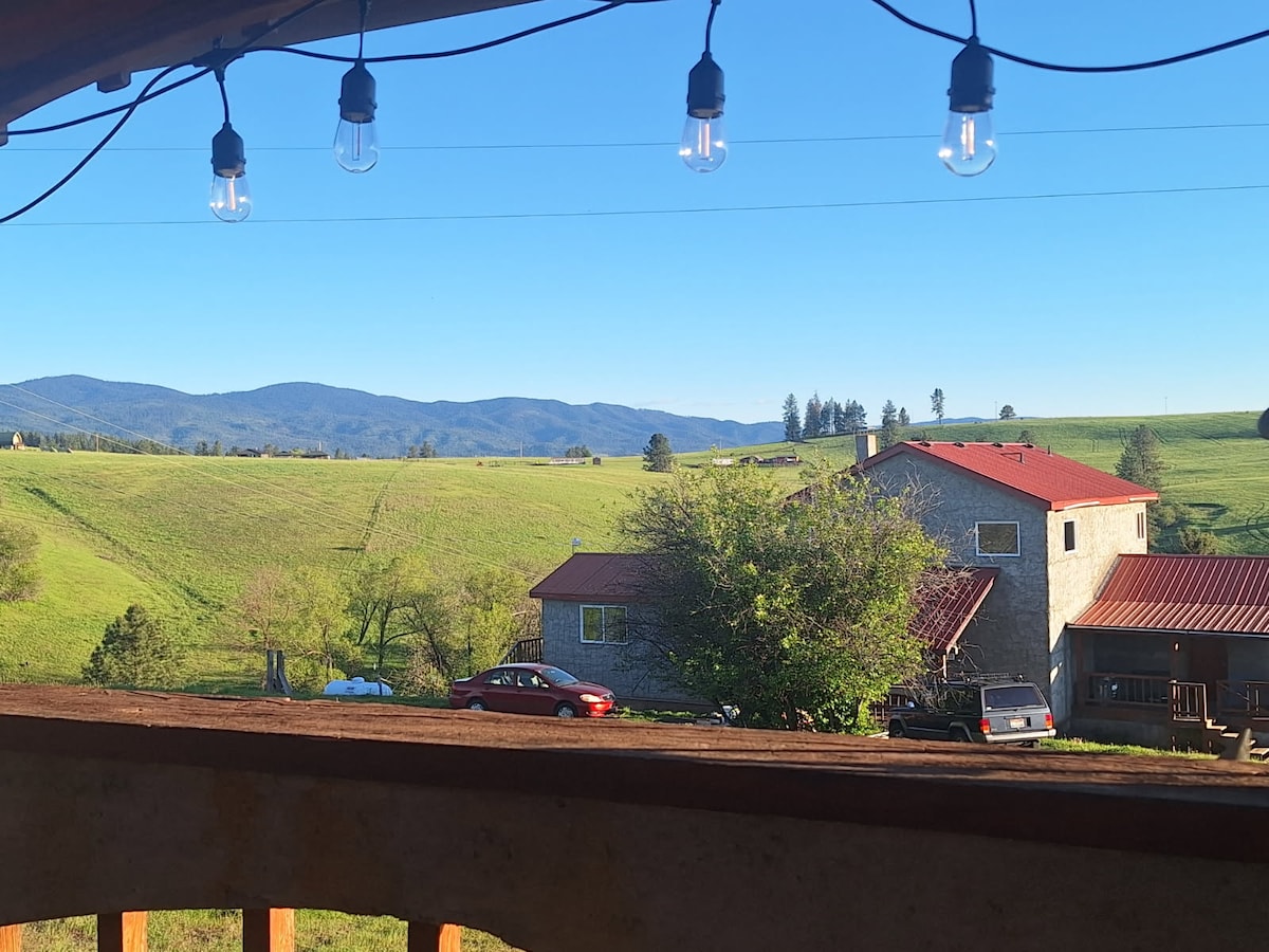 Hytta på Providence Ranch & Homestead er koselig og fredelig, og gir et perfekt tilfluktssted med utsikt over Idahos naturskjønne Camas Prairie. Hjemmet ligger en halv mile fra en grusvei, med bare noen få naboer i sikte. Hvis det å koble fra og være stille er tiltalende, kommer du til å elske dette stedet! Det studio-lignende hjemmet har alt det grunnleggende for et kort eller lengre opphold: kjøkken med kjøleskap i full størrelse, stekeovn, komfyr, mikrobølgeovn, kaffemaskin, bad med alle nødvendigheter og vaskemaskin og tørketrommel i full størrelse.