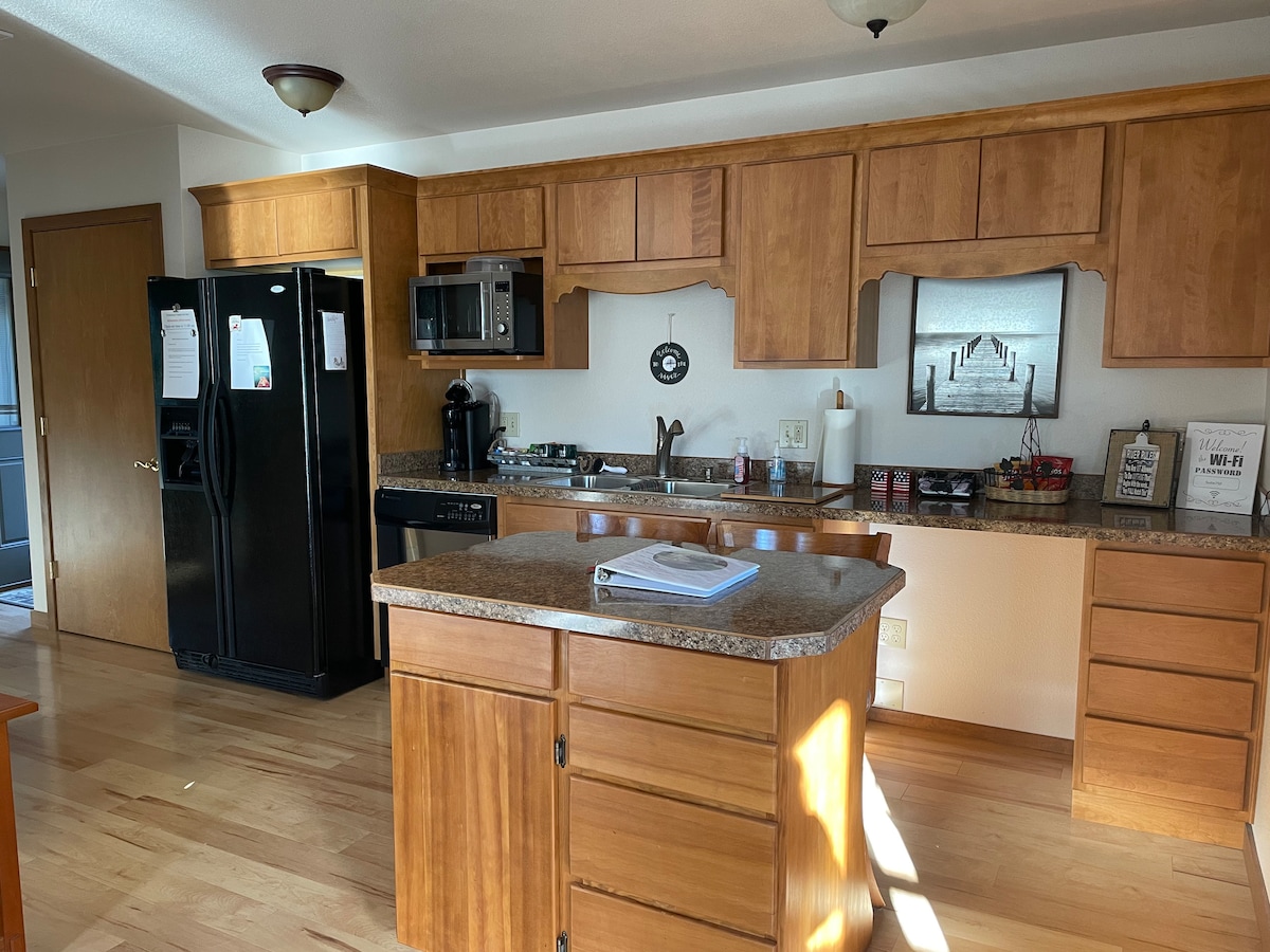 Privat leilighet med ett soverom med utsikt over Snake River. Halvlandlig område rett over elven fra Lewiston, Id. Det er ingen trinn, og vi har rikelig med parkering utenfor gaten. Bare ti minutter fra Lewiston lufthavn. Leiligheten har en liten stue med en dobbel hvilestol, et lite spisebord med to stoler, et kjøkken med kjøleskap, vask og mikrobølgeovn. Det er ingen komfyr/ovn, men vi har en dobbel kokeplate, brødrister og mange kjøkkenredskaper. Soverom med queen size-seng, bad med dusj.