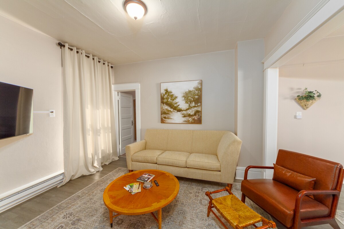 Velkommen til J&K på Main! - Gjennomtenkt renovert med high-end finish. – Luksuriøs kingsize-seng med minneskum + soveplass til én på sofaen. - Delt biljardbord for sosialt samvær. - Raskt trådløst nettverk i Business Class. - smart-TV - Full tilgang til reiseleiligheten din, fullt utstyrt med alle fasilitetene du finner hjemme. - Praktisk avstand til Spokanes beste spisesteder, butikker, barer og kafeer. – Betalt, sikret parkeringshus i nærheten (USD 30+/dag, som er standard for sentrum).