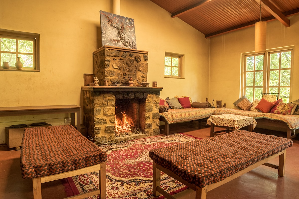 Mountain Cottage 1 er en perfekt rustikk steinhytte midt i en 4 hektar stor pæreplantasje. Den er ideell for to, men har plass til opptil fire gjester. To på en dobbeltseng og to til på gulvmadrasser. Alle hytter og den felles spisestuen har trådløst nettverk, varmt vann døgnet rundt og strøm tilbake. Vi er tilgjengelige med bil, og det er parkering på gården. Vegetariske og ikke-vegetariske måltider i hjemmestil tilbys på gården: Frokost – 250 INR per person Lunsj – 300 INR per person. Middag – Rs. 400 per person.