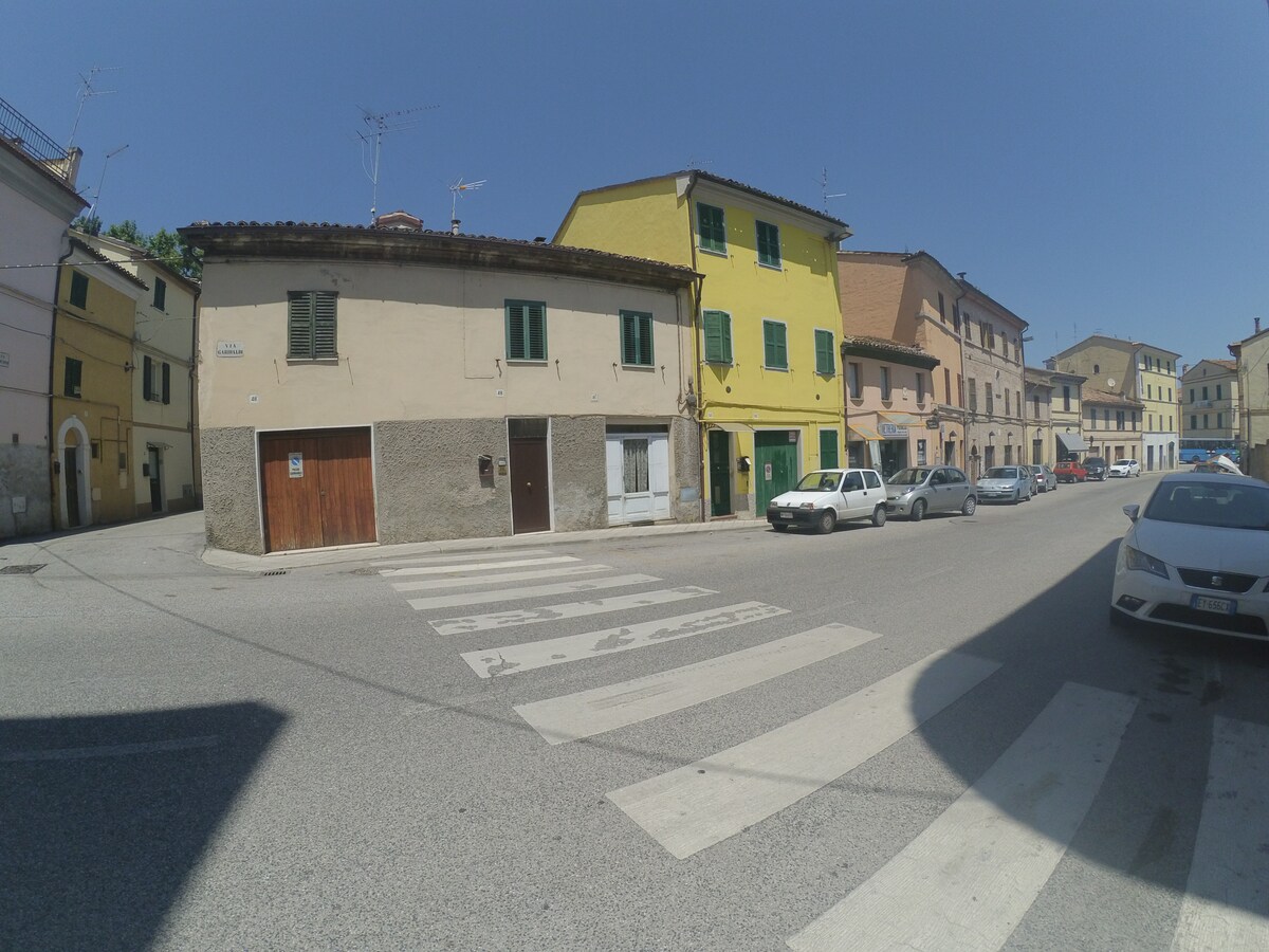 «Dimora nel Borgo» er et innbydende hus i det middelalderske historiske sentrum av Maiolati Spontini. Her kan du puste inn en avslappet og komfortabel atmosfære, gitt av den nylige og nøye restaureringen, og det rolige og stille miljøet rundt, inne i en gårdsplass fra en annen tid. Noen få meter fra huset er det alltid ledige og gratis parkeringsplasser, det er ingen ZTL-restriksjoner i det historiske sentrum. Huset er komplett med alle tjenester.