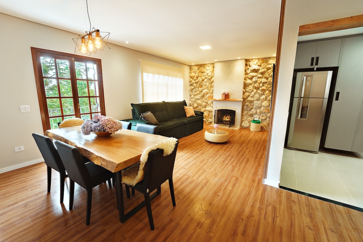Apartamento 100m2 recém reformado, moderno, aconchegante com uma vista privilegiada e uma excelente localização, apenas 7 minutos de carro do Centro Turístico de Campos do Jordao onde encontra os principais bares e restaurantes e a 700mts do Morro do Elefante. Um lugar ideal para descansar e ter contato com a natureza.