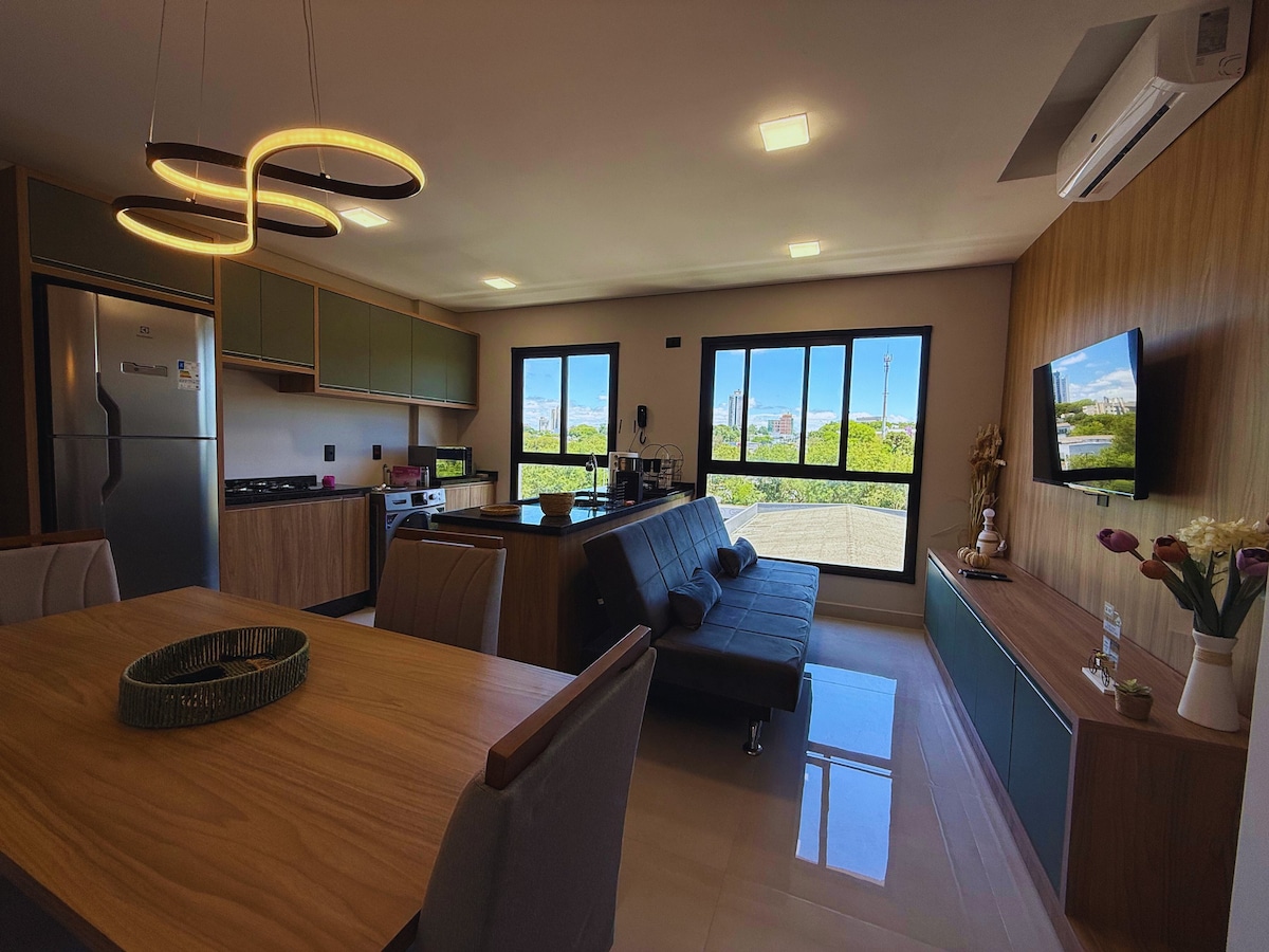 Velkommen til leiligheten vår i sentrum av Foz! Plassert i en av få bygninger med vaskeri, treningsstudio, gratis og overdekket parkering. Selve bygningen er moderne med sikkerhet/portvakt døgnet rundt og tilgjengelig kontorfellesskap! Inne i enheten finner du komfort og renhold. To bad, en vakker utsikt, 1 queen size-seng og 1 praktisk sovesofa. Kjøkkenet er fullt utstyrt slik at du kan tilberede måltider, selv om du er bare noen få skritt fra de beste restaurantene i byen.
