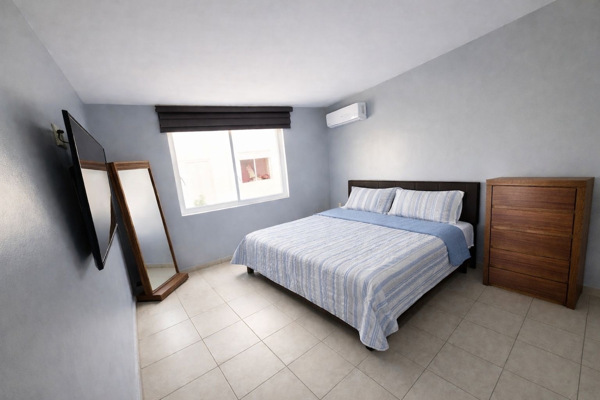 Departamento con excelente ambiente ubicado en un condominio tranquilo y seguro. * Las 3 habitaciones con Mini Split * Generamos factura si lo requieres. * Cuenta con vigilancia las 24 horas. * Internet de alta velocidad fibra óptica. * Flexibilidad en Check-In y Check-Out. * Es necesario utilizar las escaleras para acceder al alojamiento.
