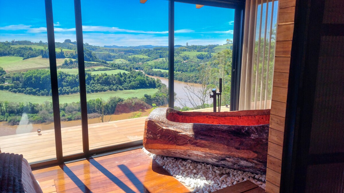 Hytta vår ligger i enden av sjarmerende Rota do Enxaimel, i Pomerode/SC, bare 15 km fra sentrum. Vi tilbyr et koselig og autentisk opphold, ledsaget av en deilig frokost tilberedt av lokale produsenter, som allerede er inkludert i dagsprisen. Hytta er et ekte fristed for å hvile, koble til og oppleve unike øyeblikk. Her kan du nyte en unik opplevelse: komfort, privatliv og kontakt med naturen på ett sted.
