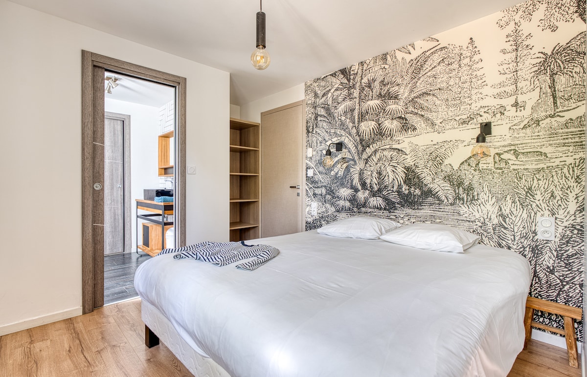 Ideell for en familieferie eller med venner i SAINT JEAN DE MONTS. Utmerket beliggenhet, rolig nabolag, i utkanten av skogen, nær sentrum, strender, butikker, barer og restauranter som du kan nå til fots eller på sykkel. I en naturlig og koselig ramme, med flotte dimensjoner, vennlig, pent dekorert - varmeapparat og kvalitetsutstyr (privat svømmebasseng, WIFI +++, senger 160 osv.)