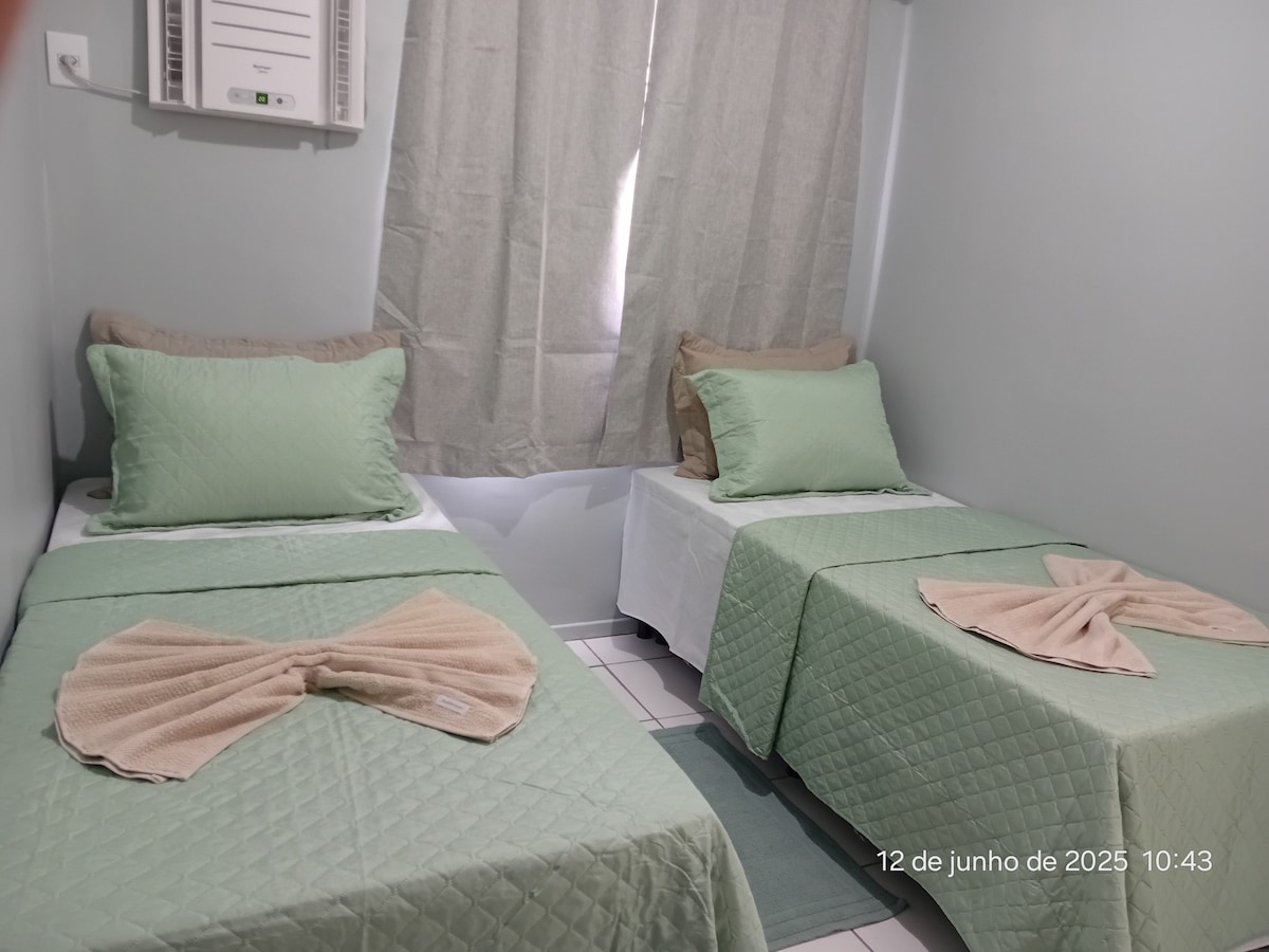 Møblert leilighet på 01 soverom, med stue, kjøkken, bad, 01 parkeringsplass og strandutsikt. Soverom med 01 dobbeltseng og én enkeltseng og fire netta, med plass til 04 personer komfortabelt. Condominium med basseng, grill, festrom og volleyballbane. Bygningen ligger på Avenida Beira Mar, foran Farol-stranden noen meter fra stranden, nær bakerier, markeder, restauranter, apotek og myggnettattraksjoner.