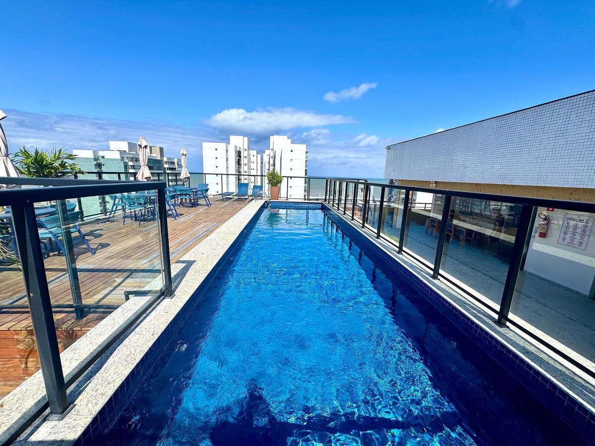Leilighet på millionærenes strand, strandpromenade, de beste strandteltene, evighetsbasseng med havutsikt, panoramisk heis (havutsikt), tørr badstue, spillrom, treningssenter, gourmetområde, 200 meter fra supermarkeder (Assaí og Atacadão), parkeringsplass.