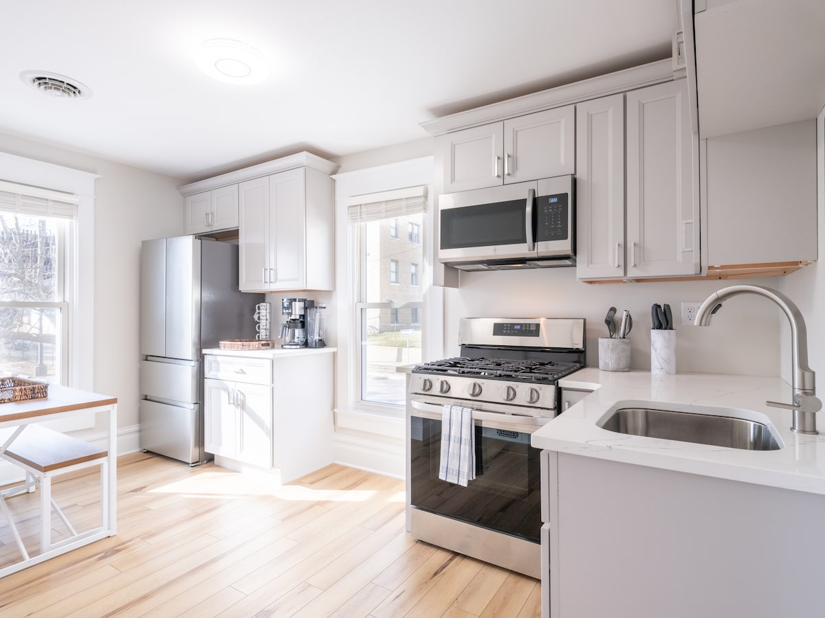 Nyt all komforten og bekvemmelighetene i denne stilige luksusleiligheten med to senger rett overfor gaten fra OSF St. Francis hospital og sykepleierskolen! Designteamet vårt la så mye omtanke og innsats i å gjøre dette stedet så utrolig funksjonelt og vakkert i dette nyrenoverte hjemmet. Nyt den gratis, private parkeringsplassen som er enda nærmere enn parkeringsplassen for OSF-ansatte! Du kunne ikke fått en bedre beliggenhet i et ekstremt trygt nabolag omgitt av sykehuseiendommer. 5-STJERNERS boopplevelse!