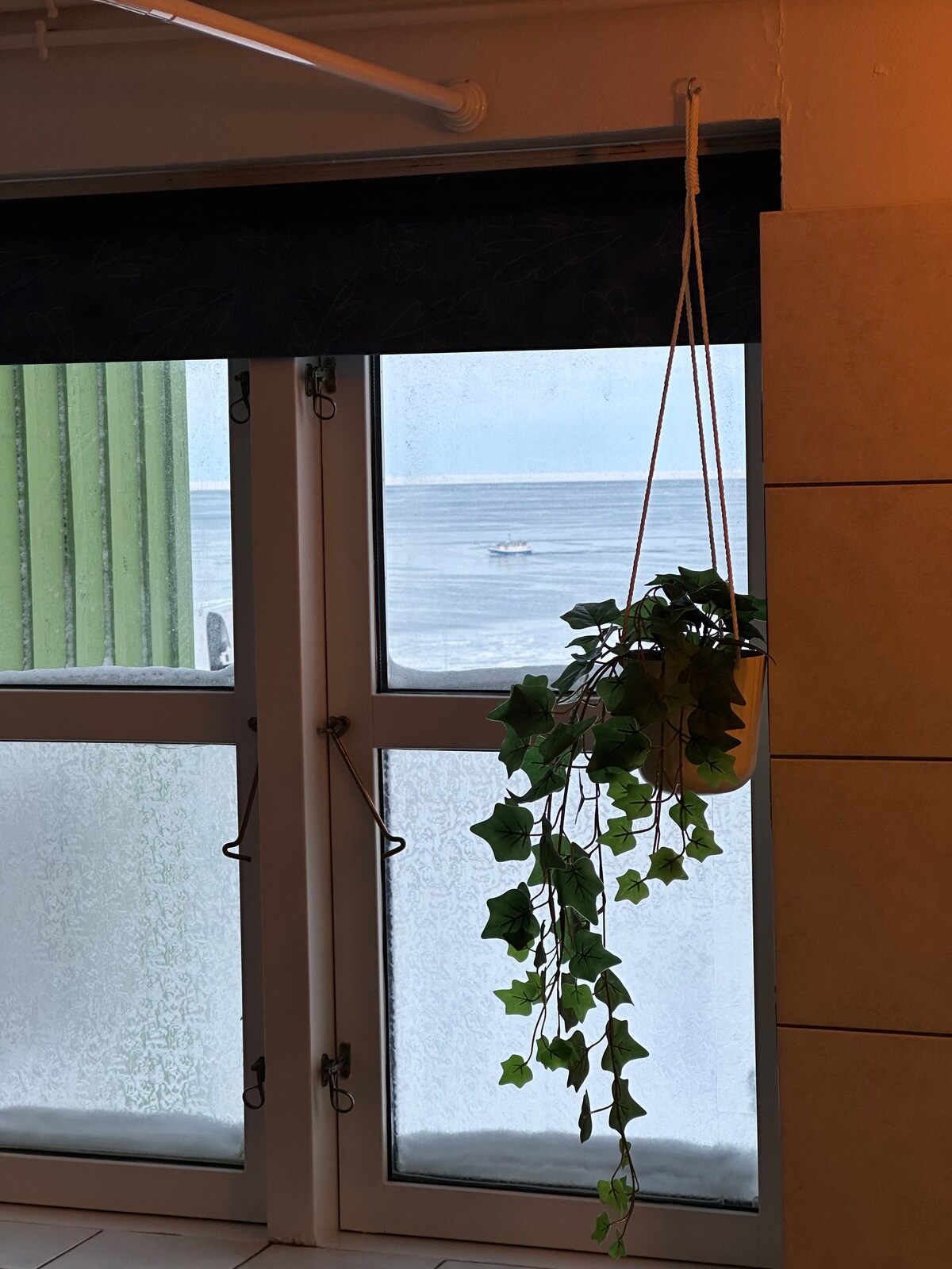 Denne boligen ligger på en av de absolutt beste plasseringene i Ilulissat, hvor du kan høre havet rett utenfor og lukte isen fra Ilulissat Isfjord. Det er utsikt til Ilulissat Isfjord, og fra huset kan du se både seile ut på havet fra den nærliggende havnen. Hvis du er heldig, kan du se hvaler fra både stuen og soverommet i løpet av sommermånedene. Boligen ligger sentralt i byen, men i et lite område hvor det ikke er noe bråk. Det er enkel tilgang til vinterbad hvis du vil bade blant isfjell.