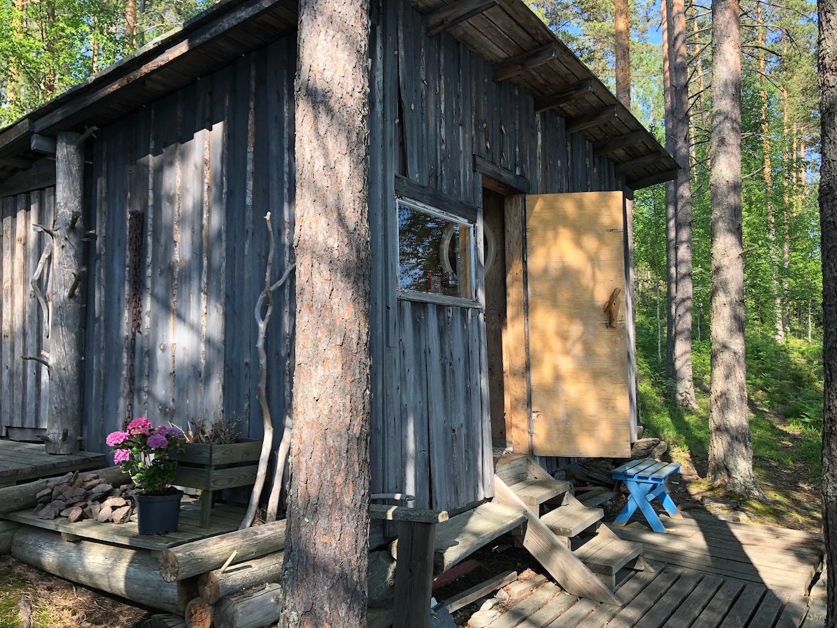 A cozy cottage between pines and the lake just in 2 steps from Saimaa. It is quite small inside (30 square meters) with a big open terrace and a green lawn in front of it. There are a Loft bed for 2 people with a view, a small kitchen, fireplace, sauna on woods inside the cabin. It is great to start your day from early swimming and yoga/breakfast at the terrace listening to birds songs and finish your day with a glass of wine taking pictures of a stunning sunset.