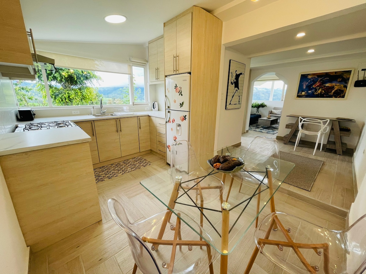 Nydelig suite med panoramautsikt over fjellene, romslige og komfortable rom og sosiale områder, utendørs basseng og jacuzzi, TRÅDLØST NETTVERK, fullt utstyrt kjøkken, gavekurv, terrasse og solskjerming. Ligger i San Jose de Chaltura, 15 minutter fra Ibarra, 1:30 timer fra den internasjonale flyplassen, Quito. Dette gårdshjemmet ble designet for å hjelpe deg med å komme i kontakt med naturen, hvile og fornye, omgitt av et unikt landskap, eksklusivt for deg. Eiendommen har seks hektar med hager, frukttrær og avokadotrær.