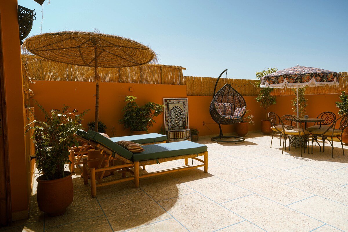 Welcome to your slice of authentic Morocco - where traditional charm meets surfer's paradise! 🏄♂️ Our highly-rated beachside suite offers the perfect blend of local style and modern comfort. 🏠 Your Private Space: • 2 comfortable bedrooms • Traditional Moroccan salon with Smart TV • Full private bathroom • Fast WiFi (108 Mbps) 🌅 Shared Rooftop Paradise: • Fully equipped kitchen for guest use • Stunning ocean & mountain views • Relaxing terrace seating • Perfect spot for sunset watching