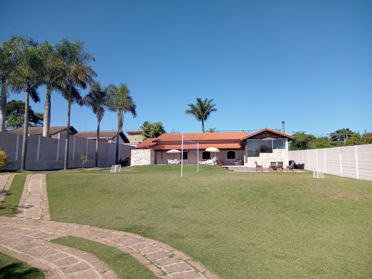 Chácara murada em condomínio fechado, com segurança 24h. Casa térrea com piscina, churrasqueira, wi-fi, varanda e amplo gramado, em ambiente tranquilo, cercado por verde. Avaliação 5 estrelas em limpeza por todos os hóspedes. Perfeito para dias em família e descanso, com conforto e privacidade. O condomínio conta com lago ornamental e playground em sua sede social.