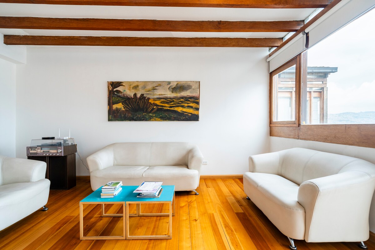 Chuquiragua Loft er en boutique-aktig hjemmebase for par, soloeventyrere, venner og forretningsreisende som setter pris på designdetaljer og komfortable, moderne fasiliteter for korte og langvarige opphold. HØYDEPUNKTER: – sentral beliggenhet – tradisjonelle koloniale detaljer – spektakulær utsikt – koselig peis – trådløst nettverk med høy hastighet – trygt og privat Chuquiragua er en av seks private leiligheter i et vakkert restaurert 100 år gammelt kolonihjem, som ligger bare fem minutters gange fra Quito Centro Historico.