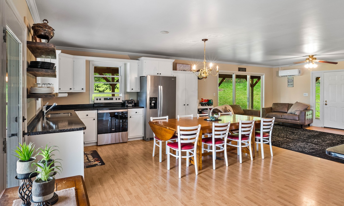 Velkommen til Fawn Hollow Retreat, en romslig jakthytte med syv soverom og to bad, og en massiv, værbeskyttet terrasse som går rundt hele huset. Nyt et biljardbord i kjelleren, tilgang for funksjonshemmede uten trinn, en stor smart-TV i den koselige stuen og et fullt møblert kjøkken. Utendørs kan du utforske skogen, leke på den store, klipt plenen eller samle dere rundt leirbålet med ved som er gitt. Perfekt for naturelskere som ønsker komfort og eventyr.